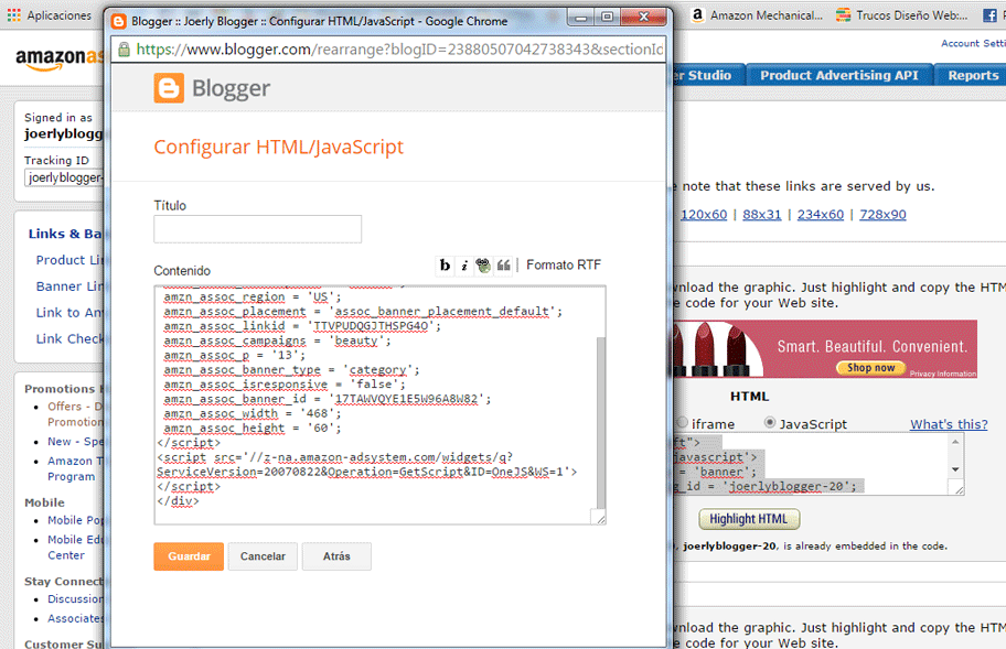 Learn step by step how to put an ad in your Amazon affiliate blog Blogger