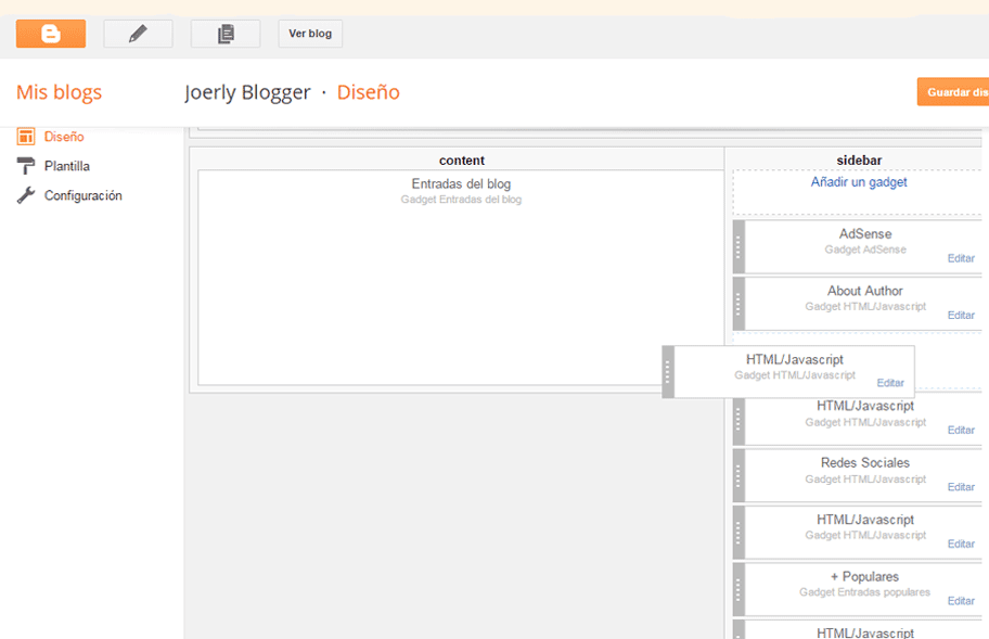 8. Add a gadget "HTML / JavaScript by clicking the plus sign (+) and you will see a window like this: